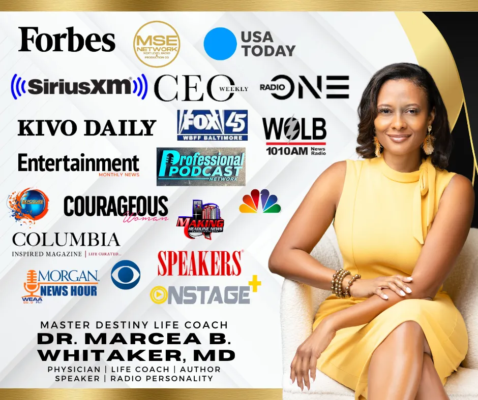 Dr. Marcea Whitaker is an award-winning international keynote speaker, physician, master destiny life and business coach, and radio personality. As CEO of In Full Bloom Health and Life Coaching, she empowers ambitious female entrepreneurs to break free from their personal prisons and transform their stories into thriving platforms.